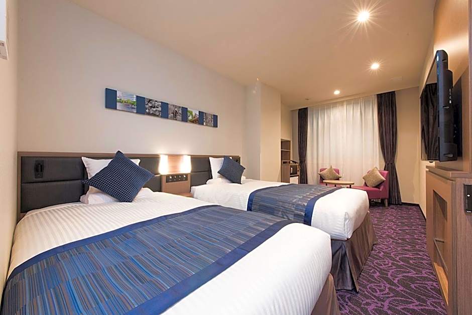 Deluxe Triple Room, Smoking (2 Twin Beds and 1 Twin Trundle Bed) is 258 square feet and includes 3 single beds 80-130 width plus desk, hairdryer, safe, and slippers.